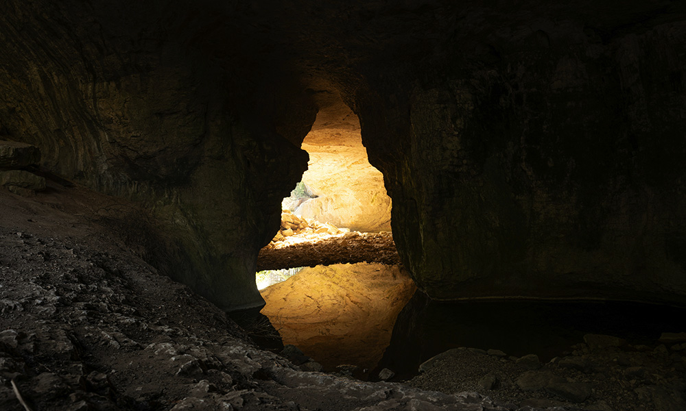 Here he is, entering the cave. See how there is just a flickering of yellow light on the walls, moving with him as he steps further in to the cold blackness. This cave where the sun will never reach; this place which, without his light, would be too dark even for shadows.