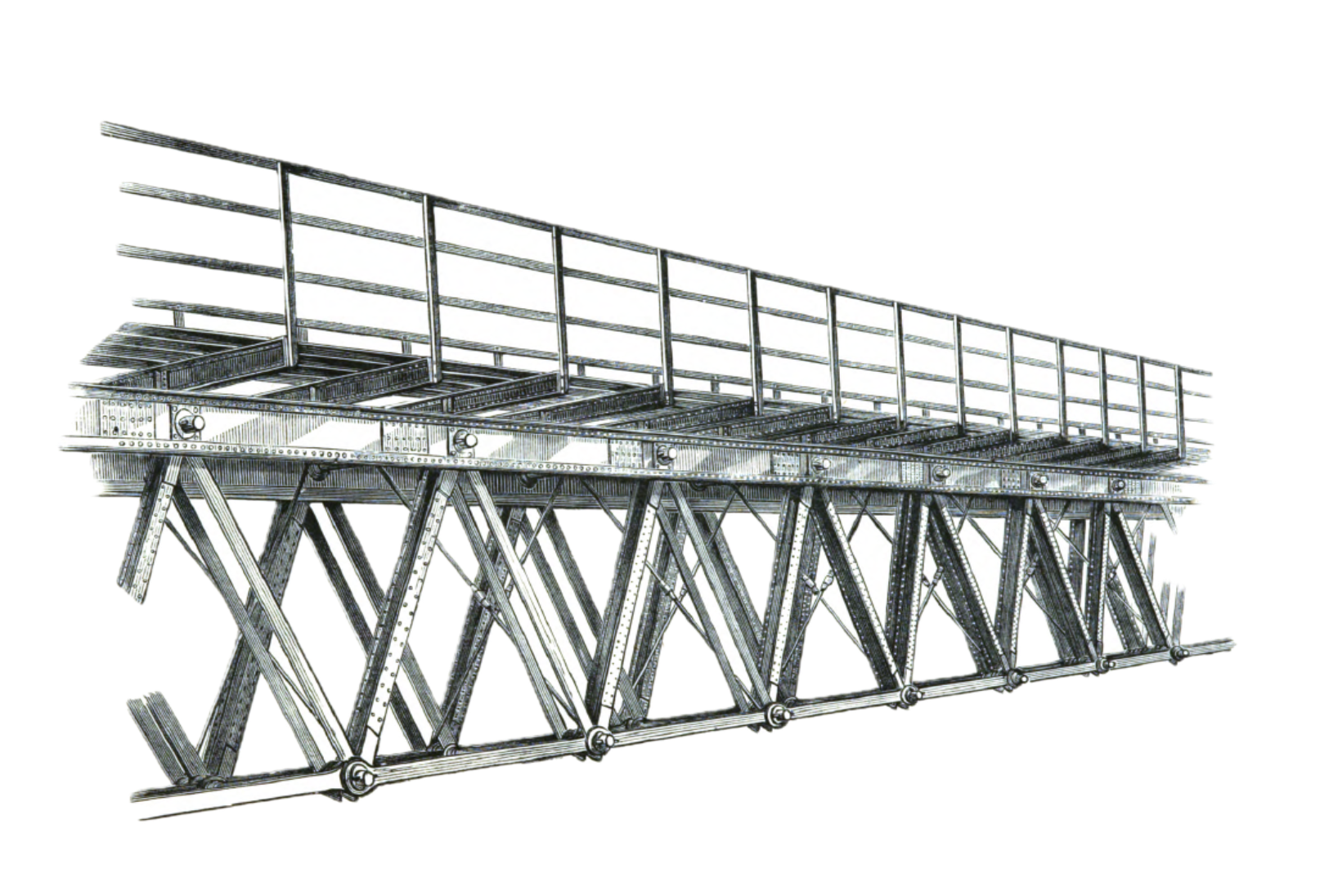 That year, in the same journal, engineer J. Parker Snow, while describing wooden lattice railway bridges he was maintaining, shared an “impression” that wooden bridges had become “obsolete.” Already 30 years earlier, when an engineer mentioned “the lattice, long since abandoned as a wooden structure,” he seemed to confirm its extinction; yet wooden lattices continued to be built, though in smaller numbers. But metal was the material on which engineers, entrepreneurs, and historians were building professional status, careers, and wealth.