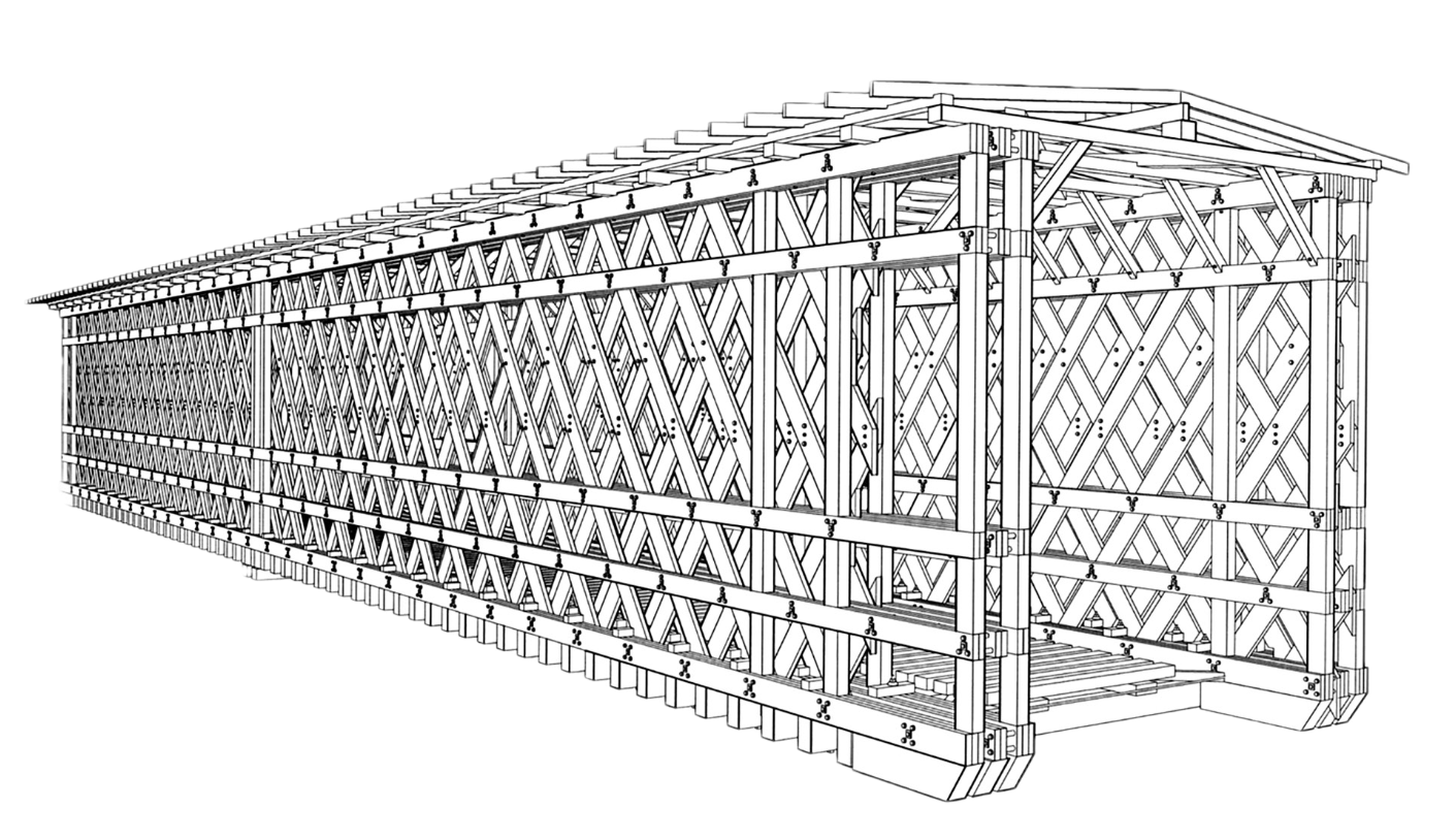 Metal embodied a majestic symbolic potency: Its mythical strength and permanence provided proof of the durability and civilizational direction of nation and imperial empire. So cultural narrators ignored the role of wood at a pivotal inventive moment — the reinvention of building — and likely remained ignorant of the moment because of wood’s centrality. Lumber and enslaved people were considered primitive or pre-industrial, on the other side of the divide, even if they played a giant role in the making of industrial capitalism and management. Like the racial classifications often employed to define society, “iron bridge” and “wooden bridge” in historical accounts often are factitious labels that reveal evolutionary caste. They refer to imaginary homogeneous types rather than actual mixed heritage and composition.